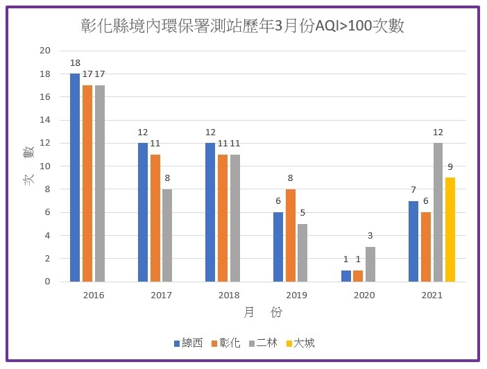 當台電燃煤機組持續環保設備改善、煙氣汙染物排放量降低,又加上配合減煤發電,如果空氣品質也是同比例來改善的話,民眾或許願意付出相對的代價。真實的情況是如何呢?3月份空氣品質稍微比2月份好一些些,卻也是近3年最差的一年。
