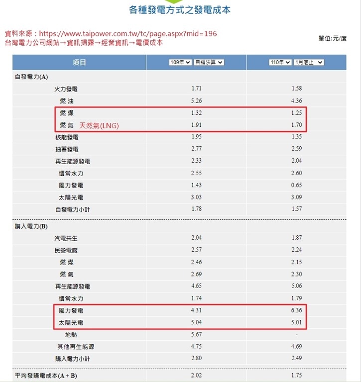 台電去年(109年)自有燃煤發電成本1.32元/度電,未來幾年會替代核能與燃煤發電的外購離岸風電,今年1月份外購的風力發電價格是6.36元/度電。在台中電廠燃煤發電大幅降低、空氣品質卻沒有比以前更好,民眾即將面對的真相您看懂了嗎?